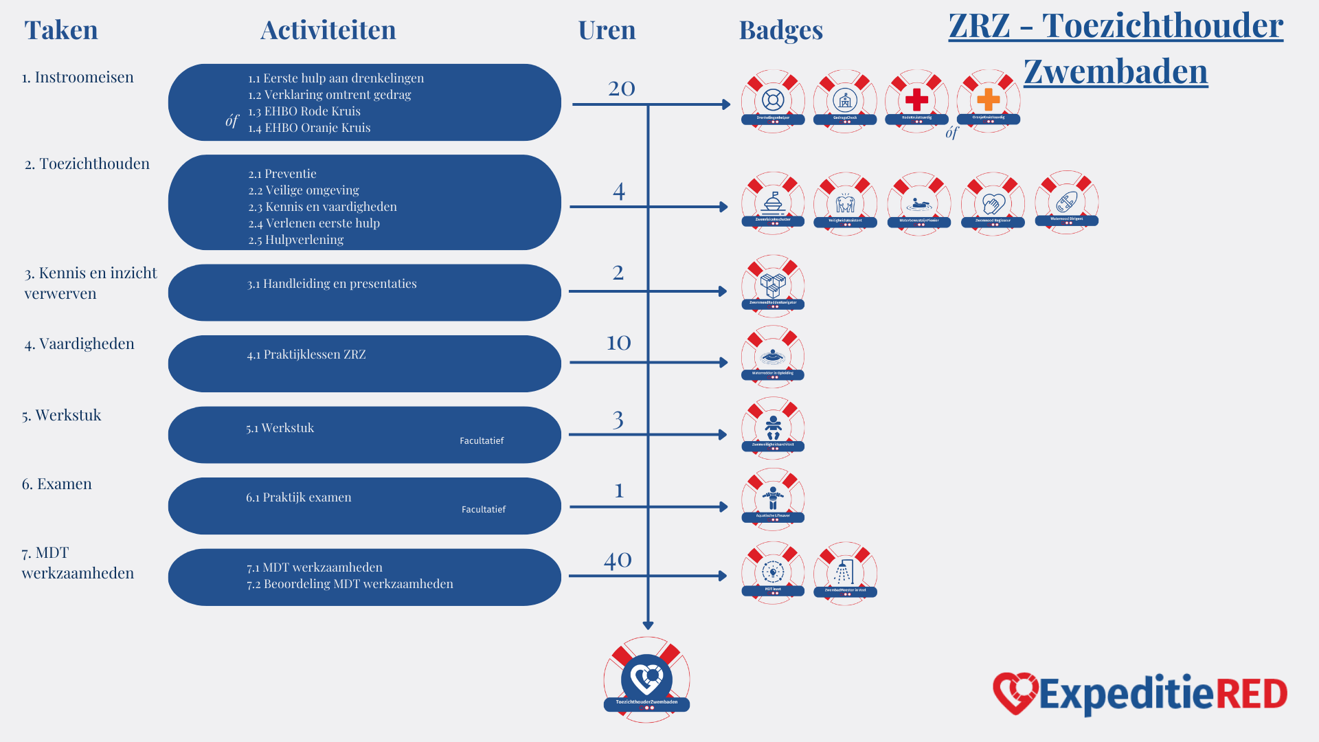 Als je taak 1 hebt gedaan voldoe je aan de instroomeisen. Je hebt kennis genomen van wat ZRZ inhoudt, je hebt je VOG aangevraagd, je hebt een zwemvaardigheidstest afgelegd en zo nodig een EHBO diploma gehaald.