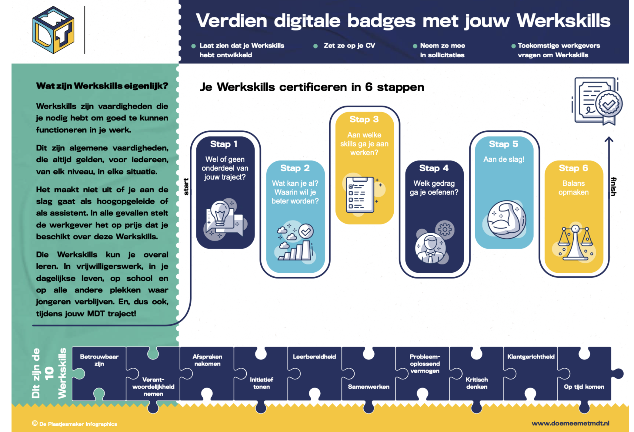 During your MDT journey with ExpeditieRED, you will work on ten valuable work skills. Each work skill represents a specific ability you have developed. You can earn digital badges for each achieved work skill.