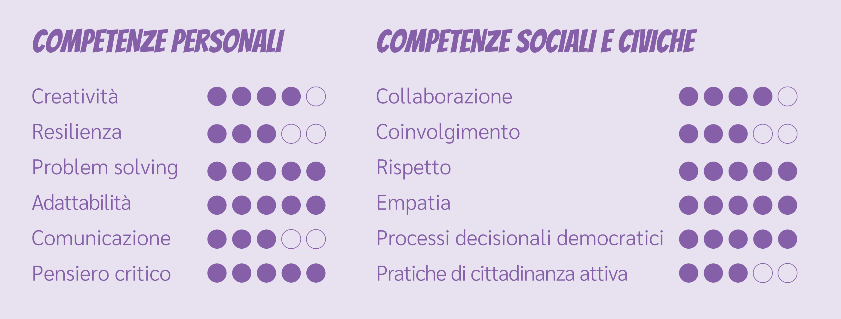 Ecco alcune competenze personali, sociali e civiche che i giovani possono sviluppare nei progetti di game design che seguono il modello Collaborativo: