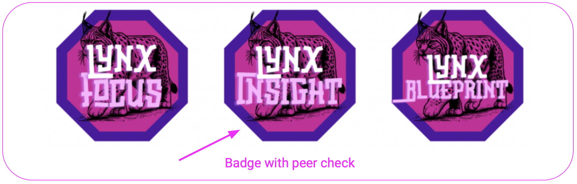 1. Toon de badge: ga op het City of Learning-platform naar het tabblad badges. Zoek de drie badges die dezelfde naam hebben als jouw dier. Bekijk vervolgens de eerste badge (die helemaal links in de rij van drie staat). Zeg de titel van de badge hardop (bijv. lynx focus) en lees duidelijk de opdracht (inclusief de leuke bonus) voor aan je lerende.