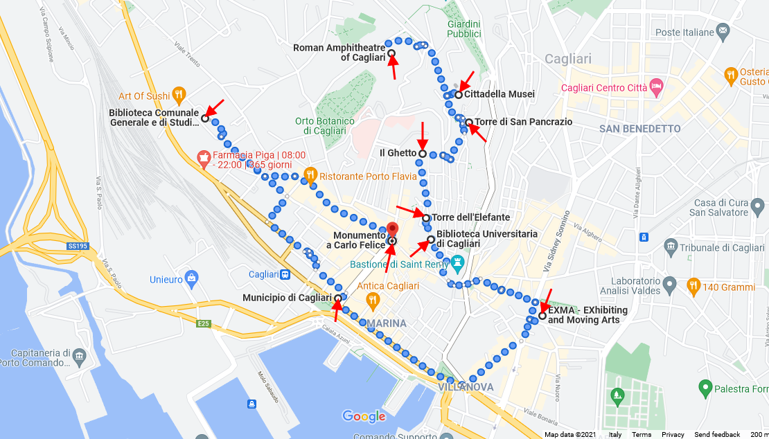 For this activity, you can start from Piazza Yenne and choose your direction based on your interests: you can have a look around the historical neighbourhood of Stampace if you’re more into modern buildings and Art Nouveau, you could go up to Castello and Buoncammino if you like archaeology and ancient history, or you can have a look around Villanova and down towards Bonaria if you’d rather find some modern museums, or even the old monumental cemetery.