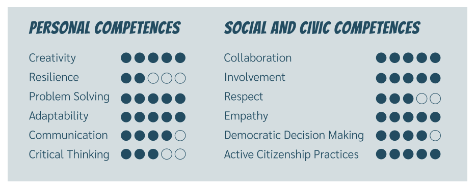 These are some personal, social and civic competences young people can develop in Participative game design projects: