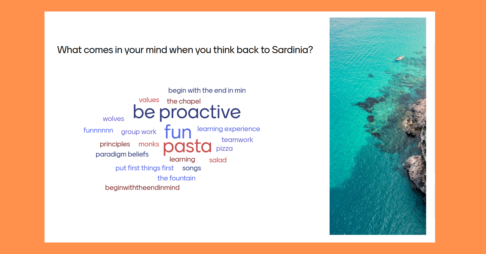 ...reflected on the learnings of part 1 of the training in Sardinia.